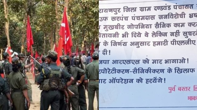 Maoists killed BJP worker in Chhattisgarh: छत्तीसगढ़ के नारायणपुर जिले के दंडवंड में मंगलवार रात 11 बजे माओवादियों ने भाजपा कार्यकर्ता पंचमदास मानिकपुरी की हत्या कर दी। वे दंडवंड गांव में उपसरपंच थे। हत्या के बाद क्षेत्र में माओवादियों ने पोस्टर चस्पा कर पेम्फलेट भी फेंके। जिसमें भाजपा के कार्यकर्ता मानिकपुरी पर पुलिस के लिए मुखबिरी करने का आरोप है।