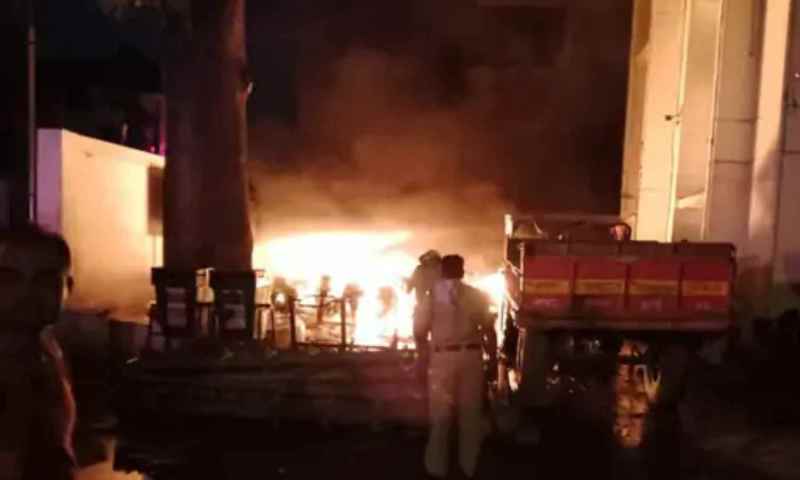 रायपुर: रायपुर में रविवार की सुबह पुलिस थाने के पास खड़ी कई बाइकों में किसी ने आग लगा दी। आग एक गाड़ी से कई गाड़ियों में लग गई और देखते ही देखते कई गाड़ियां जलकर नष्ट हो गईं। आग किसने लगाया अब तक इसका खुलासा नहीं हुआ है। पुलिस पूरे मामले की जांच कर रही है।