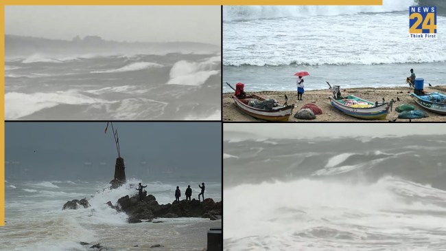 #WATCH | Odisha: Rough sea, strong winds and rainfall in Ganjam district this morning, due to the impact of cyclone #Montha