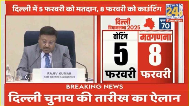 दिल्ली विधानसभा चुनाव 2025 के लिए मतदान एक ही चरण में होगा। चुनाव का नोटिफिकेशन 10 जनवरी को जारी होगा। नामांकन भरने की आखिरी तारीख 17 जनवरी होगी। नामांकनों की स्क्रूटनी 18 जनवरी होगी। नामांकन वापस लेने की तारीख 20 जनवरी होगी। मतदान 5 फरवरी को होगा और 8 फरवरी का मतगणना की जाएगी।