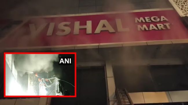 #WATCH | Delhi: Firefighting operation underway after a fire broke out in Vishal Mega Mart at Karol Bagh area.