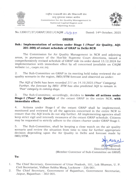 CAQM के आदेश के अनुसार दिल्ली, हरियाणा, उत्तर प्रदेश और राजस्थान के एनसीआर हिस्सों में लागू किया गया है. सभी राज्यों के मुख्य सचिवों, पुलिस प्रमुखों, शहरी विकास विभागों, प्रदूषण नियंत्रण बोर्डों और परिवहन विभागों को नोटिस भेजा गया है.