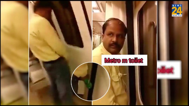 Man urinating Inside Delhi Metro Coach : दिल्ली मेट्रो में आए दिन ऐसे वीडियो वायरल होते रहते हैं, जिनको देखकर कभी हैरानी होती है तो कभी गुस्सा भी आता है। ऐसा ही एक वीडियो सामने आया है, जहां पर दिल्ली मेट्रो कोच के अंदर एक व्यक्ति को प्लास्टिक की बोतल में पेशाब करते हुए देखा जा सकता है।