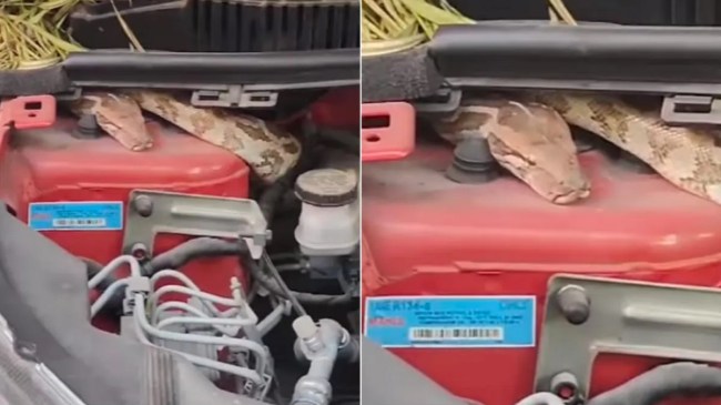 Six Feet Long Python Rescue Operation: एक शख्स ने बाहर जाने के लिए कार स्टार्ट करने की कोशिश की, लेकिन वह स्टार्ट नहीं हुई। कार में खराबी देखने के लिए उसने बोनट खोलकर चैक करना चाहा, लेकिन जैसे ही उसे बोनट खोला, उसके होश उड़ गए। अजगर फन फैलाकर फुंकार मार रहा था। घबराकर वह गिर गया। उसने आनन फानन में स्नेक कैचर को फोन किया। वहीं मामला जानकर आस-पास के लोग भी इकट्ठे हो गए। सभी ने अपने स्तर पर अजगर को कार से निकालने की कोशिश की, लेकिन वह काफी लंबा था और कुंडली मारकर इंजन के चारों तरफ लिपटा हुआ था।