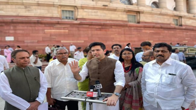 राघव चड्ढा ने आगे कहा, “मैं बहुत आशान्वित हूं। यह सत्य और असत्य, धर्म और अधर्म के बीच की लड़ाई है। धर्म और सत्य हमारे साथ हैं। बीजेपी जो कर रही है वह अधर्म है। मुझे उम्मीद है कि धर्म की जीत होगी।” मेरा विश्वास है कि ट्रेजरी बेंच पर बैठने वाले कई सांसद भी भारत के संविधान की रक्षा के लिए आगे आएंगे।
