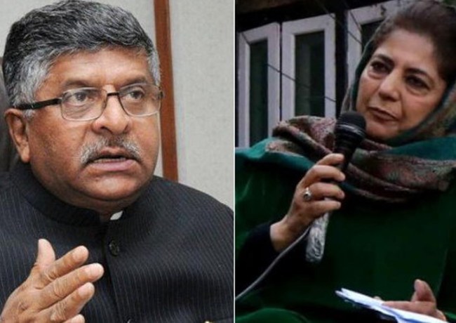 भाजपा नेता और पूर्व केंद्रीय मंत्री रविशंकर प्रसाद ने पीपुल्स डेमोक्रेटिक पार्टी (पीडीपी) प्रमुख पर पलटवार करते हुए पूछा कि क्या वह जम्मू-कश्मीर के मुख्यमंत्री के रूप में अल्पसंख्यक को स्वीकार करेंगी। प्रसाद ने महबूबा मुफ्ती को राष्ट्रपति के पद पर एपीजे अब्दुल कलाम और प्रधानमंत्री के रूप में मनमोहन सिंह के 10 वर्षों के शासन की भी याद दिलाई।