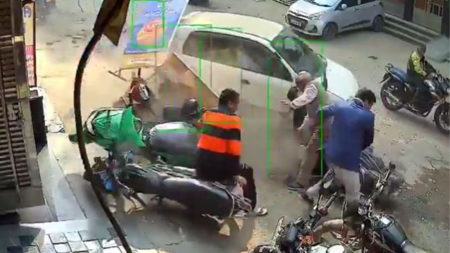 рддрднреА рдЕрдЪрд╛рдирдХ рд╕реЗ рдПрдХ рд╕рдлреЗрдж рд░рдВрдЧ рдХреА рд╣реБрдВрдбрдИ рд╕реИрдВрдЯреНрд░реЛ рдХрд╛рд░ рддреЗрдЬ рд╕реЗ рдЖ рдЬрд╛рддреА рд╣реИ рдФрд░ рд╕рдбрд╝рдХ рдкрд░ рдореМрдЬреВрдж рд╕рднреА рд▓реЛрдЧреЛрдВ рдХреЛ рдЯрдХреНрдХрд░ рдорд╛рд░ рджреЗрддреА рд╣реИред рд╕рдмрд╕реЗ рдкрд╣рд▓реЗ рдХрд╛рд░ рдиреЗ рдЙрд▓реНрдЯреА рджрд┐рд╢рд╛ рд╕реЗ рдЖ рд░рд╣реЗ рд╕рдлреЗрдж рд╕реНрдХреВрдЯрд░ рдХреЛ рдЯрдХреНрдХрд░ рдорд╛рд░реА, рдЬрд┐рд╕рд╕реЗ рдЪрд╛рд▓рдХ рдШрд╕реАрдЯрддрд╛ рд╣реБрдЖ рдЪрд▓рд╛ рдЧрдпрд╛ рдФрд░ рдлрд┐рд░ рдмрдЪреНрдЪреЗ рдХреЛ рдЧреЛрдж рдореЗрдВ рд▓реЗрдХрд░ рдЪрд▓ рд░рд╣реЗ рд╡реНрдпрдХреНрддрд┐ рдХреЛ рдЯрдХреНрдХрд░ рдорд╛рд░ рджреАред рдЗрд╕рдХреЗ рдмрд╛рдж рдХрд╛рд░ рдиреЗ рд╕рдбрд╝рдХ рдХрд┐рдирд╛рд░реЗ рдЦрдбрд╝реА рдмрд╛рдЗрдХ рдФрд░ рдмрд╛рдЗрдХ рдХреЗ рдкрд╛рд╕ рдмрд╛рддрдЪреАрдд рдХрд░ рд░рд╣реЗ рдЪрд╛рд░ рд▓реЛрдЧреЛрдВ рдХреЛ рдЯрдХреНрдХрд░ рдорд╛рд░ рджреАред