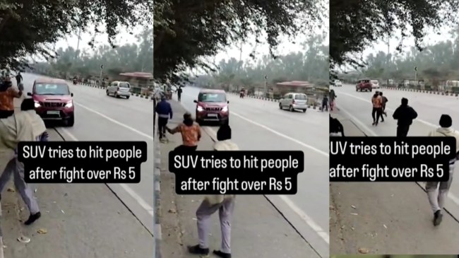 SUV Tries Run Over People in Delhi Video Viral: सोशल मीडिया पर एक वीडियो सामने आया है, जो तेजी से वायरल हो रहा है। इस वीडियो में एक लाल रंग की SUV कार कुछ लोगों को जानबूझ कर रौंदने की कोशिश करती दिखाई दे रही है। वीडियो में साफ देखा जा सकता है कि कुछ लोग कार के अंदर बैठे शख्स के साथ किसी बात पर बहस रह रहे हैं, इस बीच अचानक से गाड़ी के अंदर बैठे शख्स ने कार स्टार्ट कर दी है। इतना ही उसने नहीं कार के आगे आने वाले दूसरे पक्ष के लोगों को जानबूझ कर कुचलने की कोशिश भी की है। हालांकि, गाड़ी के सामने के सभी लोग चपेट में आने से पहले इधर-उधर भाग गए और अपनी जान बचा ली।