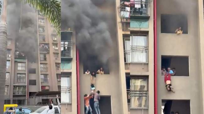 गुजरात के अहमदाबाद में एक हाई-राइज बिल्डिंग में आग लग गई। आग लगने के बाद जान बचाने के लिए लोग परेशान होते दिखाई दिए। घटना के दौरान का एक वीडियो सोशल मीडिया पर तेजी से वायरल हो रहा है। वीडियो में एक महिला को एक बच्चे को लटकाए हुए देखा जा सकता है। उसके पीछे से निकल रहे घने धुएं से आग की भयावहता का अंदाजा लगाया जा सकता है।