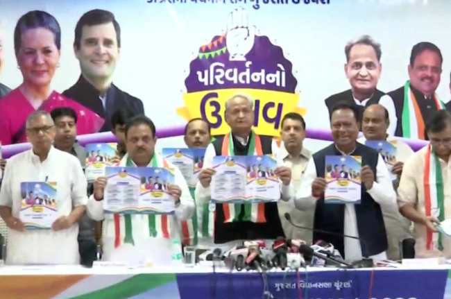 अहमदाबाद में घोषणापत्र जारी करते हुए अशोक गहलोत ने किसानों का कर्ज माफ करने और 300 यूनिट तक फ्री बिजली देने की बात कही। उन्होंने कहा कि कांग्रेस हमेशा से मेनिफेस्टो को महत्व देती है। उन्होंने कहा कि राहुल गांधी ने जो वचन दिए हैं, वो हर हाल में पूरा किया जाएगा। 6 लाख लोगों से पूछकर हमने मेनिफेस्टो बनाया है। इसके साथ बेरोजगार युवाओं को 3000 रुपये बेरोजगारी भत्ता भी दिया जाएगा।अपने घोषणा पत्र में छात्र शिक्षा को लेकर भी वादे किए हैं।