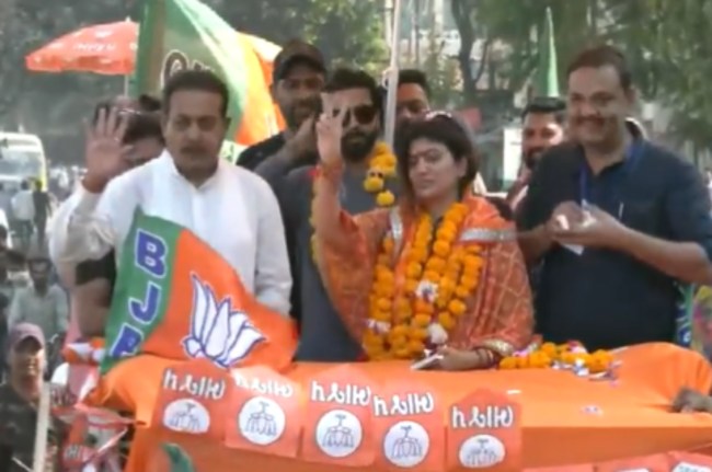 #WATCH जामनगर उत्तर से भाजपा उम्मीदवार रीवाबा जडेजा ने जामनगर में अपने पति और क्रिकेटर रवींद्र जडेजा के साथ रोड शो किया।