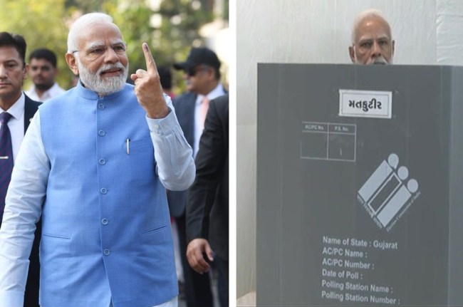पीएम मोदी ने वोट डालने से पहले स्कूल जाते समय रास्ते में लोगों का अभिवादन भी किया। पोलिंग बूथ पर कतार में खड़े होकर वोट डालने के लिए पीएम मोदी ने अपनी बारी का इंतजार भी किया और फिर वोट डाला।