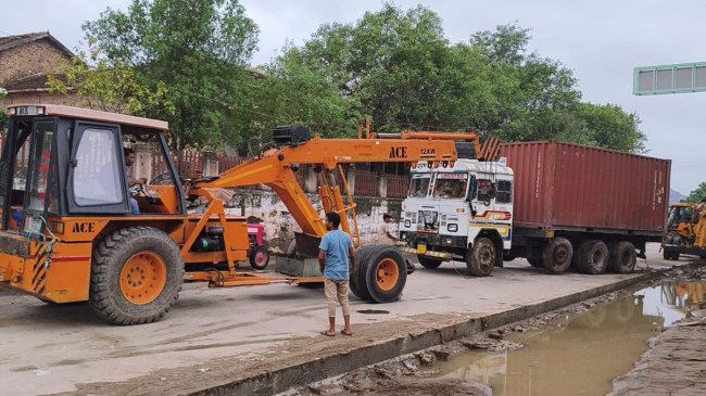 рднрд╛рд╡рдирдЧрд░ рдЬрд┐рд▓реЗ рдХреЗ рд╕рд┐рд╣реЛрд░ рдореЗрдВ рдиреЗрд╢рдирд▓ рд╣рд╛рдИрд╡реЗ 51 рдкрд░ рдирд╡-рдирд┐рд░реНрдорд┐рдд рд╕реАрд╕реА рд╕рдбрд╝рдХ рдкрд░ рдПрдХ рдХрдВрдЯреЗрдирд░ рдлрдВрд╕ рдЧрдпрд╛ред рдмрддрд╛рдпрд╛ рдЬрд╛ рд░рд╣рд╛ рд╣реИ рдХрд┐ рдареЗрдХреЗрджрд╛рд░ рдиреЗ рдмрд╛рд░рд┐рд╢ рдХреЗ рдХрд╛рд░рдг рдХрд╛рдо рдЕрдзреВрд░рд╛ рдЫреЛрдбрд╝ рджрд┐рдпрд╛ рдерд╛ред рдпрд╣реА рдШрдЯрдирд╛ рдХрд╛ рдХрд╛рд░рдг рдмрдирд╛ред рдХрдВрдЯреЗрдирд░ рдлрдВрд╕рдиреЗ рд╕реЗ рдпрд╛рддрд╛рдпрд╛рдд рдмрд╛рдзрд┐рдд рд╣реЛ рдЧрдпрд╛ред рдХрдВрдЯреЗрдирд░ рдирд┐рдХрд╛рд▓рдиреЗ рдХреЗ рд▓рд┐рдП рджреЛ рдХреНрд░реЗрди рдХреА рдорджрдж рд▓реА рдЧрдИред рд░реЗрд╕реНрдХреНрдпреВ рдХреЗ рджреМрд░рд╛рди рдХрдВрдЯреЗрдирд░ рдХрд╛ рдЯрд╛рдпрд░ рдмреНрд▓рд╛рд╕реНрдЯ рд╣реЛ рдЧрдпрд╛ред рдШрдЯрдирд╛ рдиреЗ рдиреЗрд╢рдирд▓ рд╣рд╛рдИрд╡реЗ рдкрд░ рдирд┐рд░реНрдорд╛рдг рдХрд╛рд░реНрдп рдореЗрдВ рдмрд░рддреА рдЬрд╛ рд░рд╣реА рд▓рд╛рдкрд░рд╡рд╛рд╣реА рдХреЛ рдЙрдЬрд╛рдЧрд░ рдХрд░ рджрд┐рдпрд╛ рд╣реИред рд╕реНрдерд╛рдиреАрдп рд▓реЛрдЧреЛрдВ рдиреЗ рд╕рдВрдмрдВрдзрд┐рдд рд╡рд┐рднрд╛рдЧ рд╕реЗ рдЬрд▓реНрдж рд╕реЗ рдЬрд▓реНрдж рд╕рдбрд╝рдХ рдХреА рдорд░рдореНрдордд рдФрд░ рд╕реБрд░рдХреНрд╖рд╛ рдЙрдкрд╛рдпреЛрдВ рдХреА рдорд╛рдВрдЧ рдХреА рд╣реИ