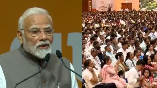 #WATCH | Gandhinagar: “…Wahi Gujarat jiske paas ek zamaane mein namak se upar kuch nahi tha, aaj duniya mein heera (diamond) ke liya jaana jata hai…” says Prime Minister Narendra Modi