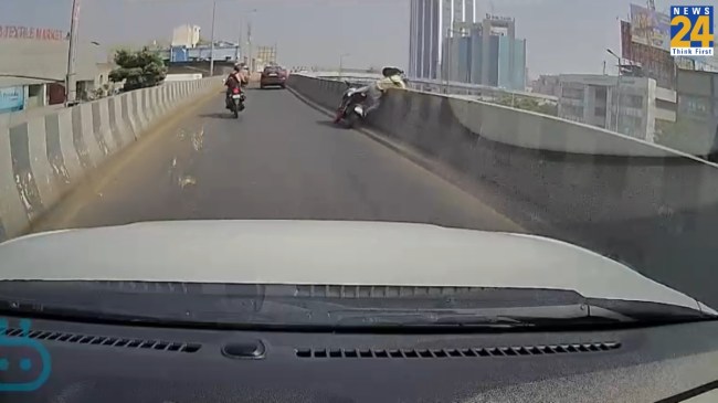 рджрд░рдЕрд╕рд▓, рд╕реЛрд╢рд▓ рдореАрдбрд┐рдпрд╛ рдкрд░ рдПрдХ рд╡реАрдбрд┐рдпреЛ рд╡рд╛рдпрд░рд▓ рд╣реЛ рд░рд╣рд╛ рд╣реИред рдпрд╣ рдХрд┐рд╕реА рд╕реАрд╕реАрдЯреАрд╡реА рдХреИрдорд░реЗ рдХреА рд░рд┐рдХреЙрд░реНрдбрд┐рдВрдЧ рдХрд╛ рд╣рд┐рд╕реНрд╕рд╛ рд▓рдЧ рд░рд╣рд╛ рд╣реИ рдФрд░ рд╣реИ рднреА рдПрдХрджрдо рддрд╛рдЬрд╛-рддрд░реАрдиред рдЗрд╕рдореЗрдВ 8 рдЕрдХреНрдЯреВрдмрд░ 2023 рдХреА рддрд╛рд░реАрдЦ рдФрд░ рд╡рдХреНрдд рд╕рдм рд▓рд┐рдЦрд╛ рд╣реИред News 24 рд╣рд┐рдВрджреА рдиреЗ рдЗрд╕ рд╡реАрдбрд┐рдпреЛ рдХреА рдкрдбрд╝рддрд╛рд▓ рдХреА рддреЛ рдкрд╛рдпрд╛ рдХрд┐ рдпрд╣ рд░рд╡рд┐рд╡рд╛рд░ рдХреЛ рдЧреБрдЬрд░рд╛рдд рдХреЗ рд╕реВрд░рдд рдореЗрдВ рдШрдЯреА рдПрдХ рдШрдЯрдирд╛ рдХрд╛ рд╣реИред рдШрдЯрдирд╛ рд╕реБрдмрд╣ 9:56 рдмрдЬреЗ рдорд╣рд╛рдирдЧрд░ рдХреЗ рд░рд┐рдВрдЧ рд░реЛрдб рдмреНрд░рд┐рдЬ рдкрд░ рдШрдЯреА рд╣реИред