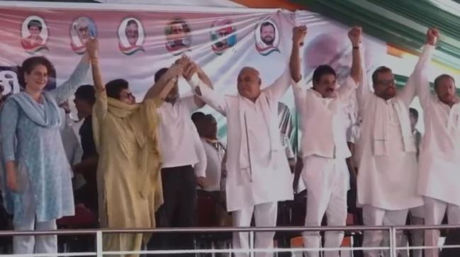 वहीं सभा को संबोधित करते हुए प्रियंका गांधी ने कहा कि हरियाणा को मोदी सरकार से सिर्फ बड़े-बड़े वादे मिले हैं। बीजेपी के नेता अब फिर जनता से नए-नए वादे कर रहे हैं। सवाल ये है कि 10 साल सरकार में रहते हुए बीजेपी ने अपने वादे पूरे क्यों नहीं किए? यहां के किसानों, महिलाओं, युवाओं और पहलवानों की सुनवाई क्यों नहीं हुई?