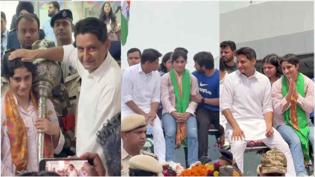 #WATCH | Indian wrestler Vinesh Phogat says, “I am grateful for this love and respect I have received from my countrymen.” pic.twitter.com/PCdVJHaq8K