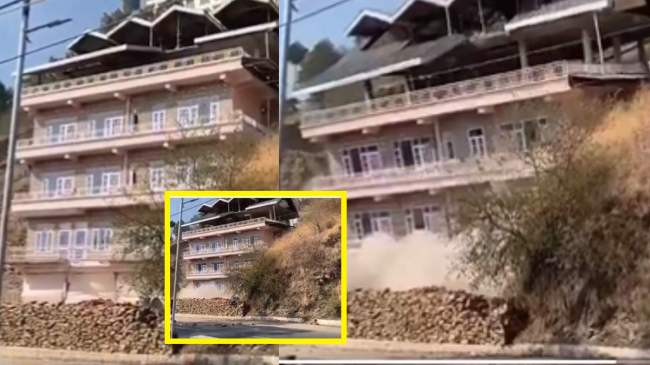 वायरल हो रहे इस वीडियो में बेहद खूबसूरत 5 मंजिला मकान देखते ही देखते भरभराकर गिरती दिखाई दे रहा हैं। बताया जा रहा है कि यह घटना शिमला ग्रामीण क्षेत्र के तहत ग्राम पंचायत घंडल की है। यह मकान शिमला-बिलासपुर नेशनल हाइवे के किनारे सोलह मील पर बना हुआ था। इसलिए बिल्डिंग गिरते ही हाईवे की आवाजाही पर रोक लगा दी गई। हालांकि, कुछ देर बाद एकतरफा आवाजाही शुरू की गई। मकान गिरने की जानकारी जैसे ही लोक निर्माण मंत्री विक्रमादित्य सिंह को हुई, वह तुरंत मौके का जायजा लेने के लिए घटनास्थल पर पहुंच गए। जानकारी के अनुसार, इस हादसे में किसी तरह की जनहानि नहीं हुई है।