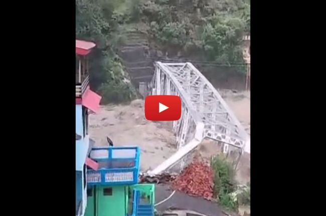 हिमाचल प्रदेश में भी जल प्रलय जैसे हालात हैं। बारिश के कारण पहाड़ों की नदियां इतने तेज बहाव के साथ बह रही है कि उनको देखकर ही लोगों के होश उड़ रहे हैं। एक मीडिया रिपोर्ट के अनुसार, हिमाचल के मंडी जिले में नदी के तेज बहाव के कारण 40 साल पुराना पुल बह गया। इस वीडियो सोशल मीडिया पर वायरल हो रहा है।