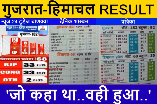 Gujarat-Himachal Results: एक बार फिर न्यूज24-टुडेज चाणक्या का स्टेट एनालिसिस 100 फीसदी सटीक रहा। गुजरात और हिमाचल विधानसभा चुनावी नतीजों पर न्यूज24 ने 5 दिसंबर को जो कहा, वही नतीजे 8 दिसंबर को EVM से निकले।