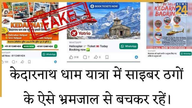 рдардЧ рд╡реНрд╣рд╛рдЯреНрд╕рдПрдк рдХреЙрд▓ рдпрд╛ рдЪреИрдЯ рдХреЗ рдЬрд░рд┐рдП рд╣реЗрд▓реАрдХреЙрдкреНрдЯрд░ рдЯрд┐рдХрдЯ рдмреБрдХрд┐рдВрдЧ рдХрд╛ рдЭрд╛рдВрд╕рд╛ рджреЗрдХрд░ рд╕реАрдзреЗ рдкреИрд╕реЗ рдорд╛рдВрдЧрддреЗ рд╣реИрдВ рдФрд░ рдХреНрдпреВрдЖрд░ рдХреЛрдб рд╕реНрдХреИрди рдХрд░рд╛рдиреЗ рдХрд╛ рджрдмрд╛рд╡ рдмрдирд╛рддреЗ рд╣реИрдВ. рдЬрдмрдХрд┐ рдХреЛрдИ рднреА рдЕрдзрд┐рдХреГрдд рдХрдВрдкрдиреА рдЗрд╕ рддрд░рд╣ рднреБрдЧрддрд╛рди рдирд╣реАрдВ рд▓реЗрддреА. рдЗрд╕рдХреЗ рдЕрд▓рд╛рд╡рд╛ тАШPawan HansтАЩ рдФрд░ тАШHimalayanтАЩ рдЬреИрд╕реЗ рдирд╛рдореЛрдВ рд╕реЗ рдорд┐рд▓рддреА-рдЬреБрд▓рддреА рдирдХрд▓реА рд╡реЗрдмрд╕рд╛рдЗрдЯ рдмрдирд╛рдХрд░ рднреА рдардЧреА рдХреА рдЬрд╛ рд░рд╣реА рд╣реИ. рдкреНрд░рд╢рд╛рд╕рди рдиреЗ рд╕реНрдкрд╖реНрдЯ рдХрд┐рдпрд╛ рд╣реИ рдХрд┐ рд╣реЗрд▓реАрдХреЙрдкреНрдЯрд░ рдЯрд┐рдХрдЯ рдХреА рдмреБрдХрд┐рдВрдЧ рдХреЗрд╡рд▓ рдЖрдзрд┐рдХрд╛рд░рд┐рдХ рдкреЛрд░реНрдЯрд▓ https://heliyatra.irctc.co.inтБа рдХреЗ рдорд╛рдзреНрдпрдо рд╕реЗ рд╣реА рдХрд░реЗрдВ. рдХрд┐рд╕реА рдЕрдиреНрдп рд▓рд┐рдВрдХ рдпрд╛ рд╡реЗрдмрд╕рд╛рдЗрдЯ рдкрд░ рднрд░реЛрд╕рд╛ рди рдХрд░реЗрдВ рдФрд░ рдпреВрдЖрд░рдПрд▓ рдХреЛ рдзреНрдпрд╛рди рд╕реЗ рдЬрд╛рдВрдЪреЗрдВ.