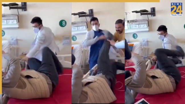 इंदिरा गांधी मेडिकल कॉलेज एवं अस्पताल आईजीएमसी शिमला में उपचार के लिए आए मरीज और डॉक्टर के बीच ‘तू’ कहने को लेकर बहस इतनी बढ़ गई कि हाथापाई से लेकर लात घूंसे चल पड़े. जिसका वीडियो सामने आने के बाद अब मामला सुर्खियों में है. 15 सेकंड की वीडियो में देखा जा सकता है कि बेड पर लेटे हुए मरीज पर पहले डॉक्टर हमला करता है उसके बाद मरीज ने डॉक्टर पर लातें बरसाने शुरू कर दिए, फिर तो डॉक्टर ने भी आपा खोते हुए मरीज पर घूंसे बरसाना शुरू कर दिया. डॉक्टर ने बेड पर ही मरीज की बुरी तरह से पिटाई कर दी.