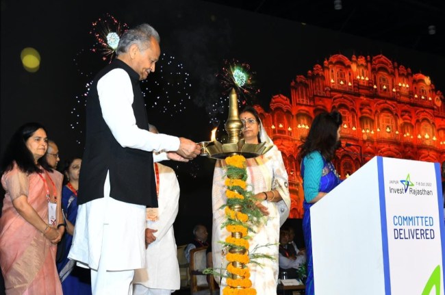 जेईसीसी, सीतापुरा (जयपुर) में आयोजित हो रहे इन्वेस्ट राजस्थान समिट 2022 का दीप प्रज्ज्वलित कर शुभारम्भ किया। pic.twitter.com/SbbAbpxsnO