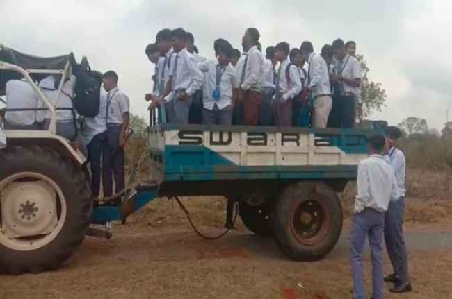 रांची से विवेक चंद्र की रिपोर्टः झारखण्ड में इन दिनों दसवीं बोर्ड और इंटर की परीक्षा चल रही है ऐसे में एक तस्वीर खुब वायरल हो रही है। इस तस्वीर में युनिफॉर्म में बच्चे ट्रैक्टर ट्राली पर सवार हैं। जानकारी के अनुसार चक्रधरपुर के चैनपुर में स्थित कोल्हान आवासीय विद्यालय के 52 बच्चों को सोमवार को एक साथ एक ही ट्रेक्टर में भेड़-बकरियों की तरह लादकर परीक्षा दिलाने परीक्षा केंद्र तक ले जाया गया।