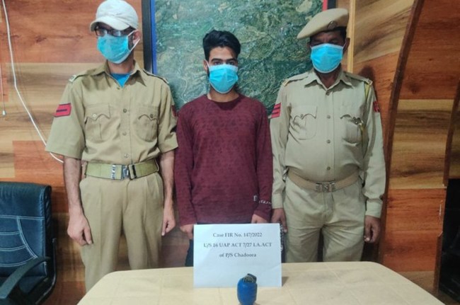 J&K | In the case of grenade attack in Budgam, police today arrested one more hybrid terrorist of prescribed outfit Lashkar-e-Toiba who is involved in a grenade attack on minorities. Incriminating material of Lashkar-e-Toiba & one hand Grenade has been recovered: Kashmir Police pic.twitter.com/fNkvyKCoDo