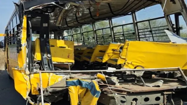 рдЯреНрд░рдХ рдХреА рднрд┐рдбрд╝рдВрдд рдХреЗ рдмрд╛рдж рдмрд╕ рдореЗрдВ рдмреИрдареЗ рдЫрд╛рддреНрд░-рдЫрд╛рддреНрд░рд╛рдПрдВ рдПрдХ рджреВрд╕рд░реЗ рдХреЗ рдКрдкрд░ рдЧрд┐рд░ рдкрдбрд╝реЗ рдФрд░ рдЙрдирдореЗрдВ рдЪреАрдЦ рдкреБрдХрд╛рд░ рдордЪ рдЧрдИред рдмрддрд╛рдпрд╛ рдЬрд╛ рд░рд╣рд╛ рд╣реИ рдХрд┐ рдмрд╕ рд╕рд╛рдорд╛рдиреНрдп рд░рдлреНрддрд╛рд░ рд╕реЗ рдЪрд▓ рд░рд╣реА рдереАред рдЗрд╕ рд╣рд╛рджрд╕реЗ рдореЗрдВ 2 рджрд░реНрдЬрди рдЫрд╛рддреНрд░-рдЫрд╛рддреНрд░рд╛рдПрдВ рдЬрдЦреНрдореА рд╣реЛ рдЧрдПред рд╕реНрдерд╛рдиреАрдп рд▓реЛрдЧреЛрдВ рдиреЗ рдмрд╕ рдореЗрдВ рдлрдВрд╕реЗ рд╕реНрдЯреВрдбреЗрдВрдЯреНрд╕ рдХреЛ рдмрд╛рд╣рд░ рдирд┐рдХрд╛рд▓рд╛ рдФрд░ рдЙрдиреНрд╣реЗрдВ рд╕рдбрд╝рдХ рдХреЗ рдХрд┐рдирд╛рд░реЗ рдмреИрдард╛рдпрд╛ред