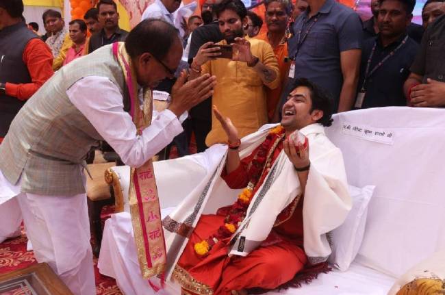 दरअसल, भोपाल के लालघाटी स्थित गुफा मंदिर परिसर में परशुराम जन्मोत्सव पर अक्षयोत्सव कार्यक्रम रखा गया। जिसमें बागेश्वर धाम के पं. धीरेंद्रकृष्ण शास्त्री भी शामिल हुए। CM शिवराज सिंह चौहान, गुफा मंदिर श्री रामानंद आश्रम के महंत श्री श्री 1008 रामप्रवेशदास जी महाराज, बीजेपी प्रदेश अध्यक्ष वीडी शर्मा, पूर्व केंद्रीय मंत्री सुरेश पचौरी और सरकार के मंत्री विधायक मौजूद रहे।