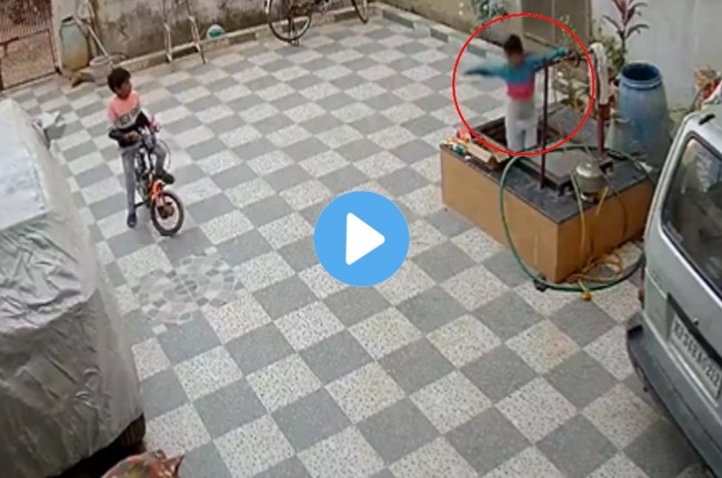 #MP के #दमोह में घर के आंगन में खेलता हुआ बच्चा कुएं में गिर गया। #CCTV कैमरे में कैद हुआ हादसा, देखें #VIDEO#ViralVideo #MPNews #Damoh pic.twitter.com/yMcWl3uk1U