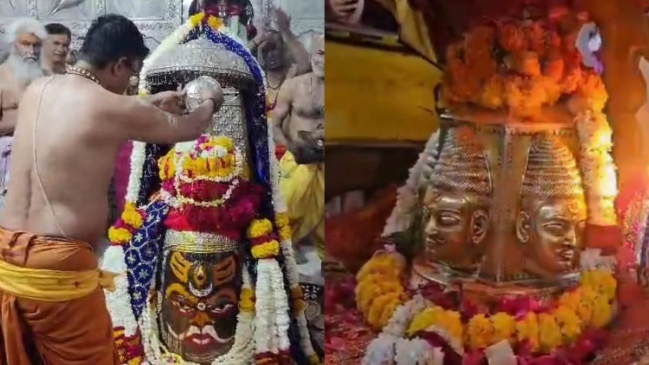 #WATCH: #Ujjain рдХреЗ #рдорд╣рд╛рдХрд╛рд▓реЗрд╢реНрд╡рд░ рдордВрджрд┐рд░ рдореЗрдВ рджрд┐рдЦрд╛ рд░рдВрдЧ рдкрдВрдЪрдореА рдХреА рдзреВрдо, рднрд╕реНрдордЖрд░рддреА рдФрд░ рд░реБрджреНрд░рд╛рднрд┐рд╖реЗрдХ рдХреЗ рдмрд╛рдж рдмрд╛рдмрд╛ рдорд╣рд╛рдХрд╛рд▓ рдХрд┐, рдХреА рдЧрдИ рдкреВрдЬрд╛-рдЕрд░реНрдЪрдирд╛ I
