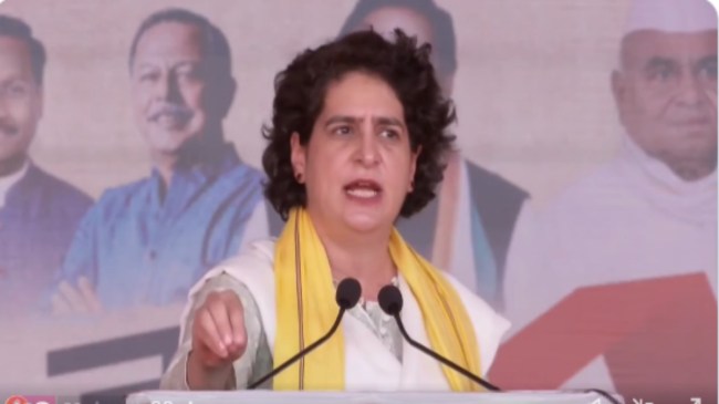 рдЬрдирд╕рднрд╛ рдХреЛ рд╕рдВрдмреЛрдзрд┐рдд рдХрд░рддреЗ рд╣реБрдП рдкреНрд░рд┐рдпрдВрдХрд╛ рдЧрд╛рдВрдзреА рдиреЗ рдХрд╣рд╛ рдХрд┐ рдЬрдм рдЪреБрдирд╛рд╡ рдЖрддреЗ рд╣реИрдВ рддреЛ рд╕рднреА рдкрд╛рд░реНрдЯрд┐рдпреЛрдВ рдХреЗ рдиреЗрддрд╛ рд▓реЛрдЧреЛрдВ рдХреЗ рд╕рд╛рдордиреЗ рдирдП- рдирдП рд╡рд╛рджреЗ рдХрд░рддреЗ рд╣реИрдВред рдХрд╣рддреЗ рд╣реИрдВ, рд╕рд░рдХрд╛рд░ рдмрдиреА рддреЛ рдпреЗ рдХрд░реЗрдВрдЧреЗ рд╡реЛ рдХрд░реЗрдВрдЧреЗред рд╕рд░рдХрд╛рд░ рдмрдирдиреЗ рдХреЗ рдмрд╛рдж рдХреМрди-рд╕реА рдкрд╛рд░реНрдЯреА рдЕрдкрдиреЗ рдХрд┐рддрдиреЗ рд╡рд╛рджреЗ рдирд┐рднрд╛рддреА рд╣реИ… рдореИрдВ рдЙрд╕ рдкрд░ рдХреБрдЫ рдирд╣реАрдВ рдХрд╣рдирд╛ рдЪрд╛рд╣рддреА, рд▓реЗрдХрд┐рди рдЕрдЧрд░ рдордзреНрдпрдкреНрд░рджреЗрд╢ рдореЗрдВ рдХрд╛рдВрдЧреНрд░реЗрд╕ рдХреА рд╕рд░рдХрд╛рд░ рдмрдирддреА рд╣реИ рддреЛ рдкрд╛рд░реНрдЯреА рдЬрдирддрд╛ рд▓реЗ рдХрд┐рдП рдЕрдкрдиреЗ рд╕рднреА рд╡рд╛рджреЗ рдкреВрд░реЗ рдХрд░реЗрдВрдЧреАред