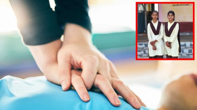 Girl Students Saved Teacher Life By Giving CPR In Sagar: मध्य प्रदेश के सागर जिले के देवरी के गवर्नमेंट हायर सेकेंडरी स्कूल जमुनिया चिखली में स्कूली कार्यक्रम के बाद शिक्षक को हार्ट अटैक आ गया। इस दौरान वे जमीन पर गिर पड़े। हालांकि, स्कूल की छात्रा निशिका यादव और प्राची विश्वकर्मा ने उन्हें देख लिया और दोनों ने मिलकर शिक्षक को सीपीआर देकर जान बचाई।