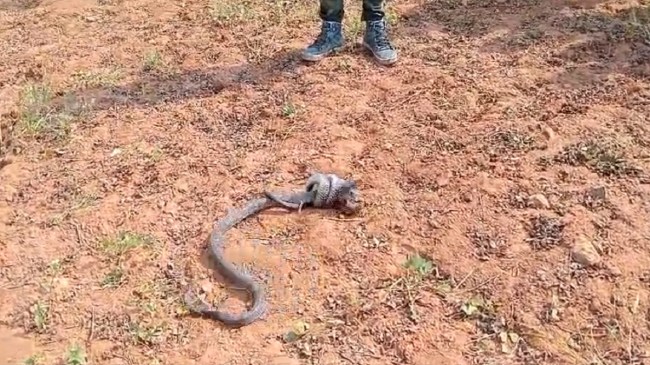 मामला मध्य प्रदेश के शिवपुरी जिले की नरवर तहसील के कोंडर गांव का है। एक किसान के खेत में अचानक से 2 जहरीले कोबरा सांप आपस में भिड़ गए। दोनों कोबरा के पास एक नागिन भी देखी गई। माना गया कि दोनों कोबरा के बीच लड़ाई नागिन को लेकर हुई थी। इसकी सूचना तत्काल सर्प मित्र सलमान पठान को दी गई थी। सूचना मिलते ही मौके पर पहुंचे सर्प मित्र सलमान ने दोनों कोबरा को अलग किया और उनाके रेस्क्यू करके अपने साथ ले गए, जिन्हे बाद में सुरक्षित जंगल में छोड़ा दिया जाएगा। इस बीच दोनों कोबरा को पकड़े जाता देख नागिन अपनी बांबी (बिल) के अंदर चली गई।