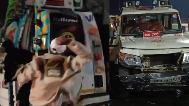 Bhopal News :भोपाल में भारतीय जनता पार्टी के प्रदेश अध्यक्ष वीडी शर्मा के कारकेट को ट्रक ड्राइवर ने टक्कर मार दी। इसके बाद ड्राइवर ट्रक लेकर भागने की कोशिश अकरने लगा। हालांकि उसे ब्यावरा में देहात थाना पुलिस के द्वारा पकड़ लिया गया। पुलिस ने ट्रक चालक पर एफआईआर भी दर्ज की है। बताया जा रहा है कि ट्रक ड्राइवर ने काफिले को टक्कर मारने के साथ ही 6 जगहों पर आठ पुलिसकर्मियों की गाड़ियों को क्षतिग्रस्त कर दिया।