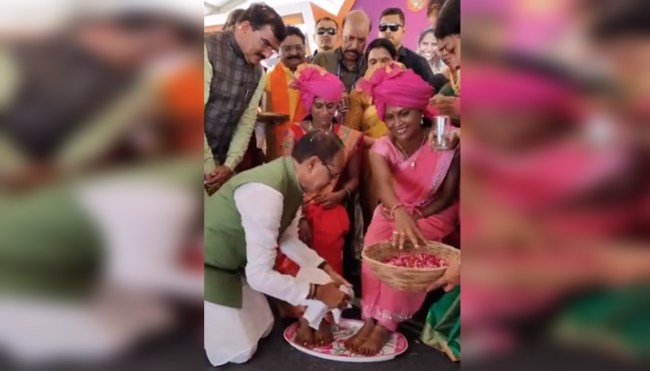 CM Shivraj Singh Chouhan Washed Feet of Woman In Burhanpur: मध्यप्रदेश में इस साल विधानसभा चुनाव प्रस्तावित हैं। इसी क्रम में भाजपा और कांग्रेस चुनाव की तैयारियों में जुटी है। जहां एक तरफ भाजपा विजय संकल्प यात्रा निकाल रही है तो वहीं दूसरी ओर कांग्रेस परिवर्तन यात्रा के जरिए वापसी की कोशिशों में जुटी है। सीएम शिवराज सिंह चौहान भी इन दिनों से अपने बयानों की वजह से सुर्खियों में रहते हैं। इस बीच सीएम शिवराज का एक वीडियो सामने आया है। इस वीडियो में देखा जा सकता है कि सीएम शिवराज महिलाओं के पैर धो रहे हैं।