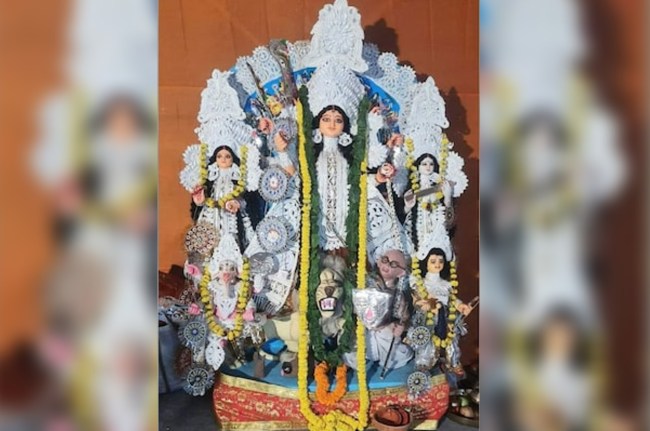 Mahatma Gandhi: कोलकाता में दुर्गापूजा के मौके पर बनाए गए एक पंडाल में महिषासुर की जगह महात्मा गांधी का चेहरा दिखाने के बाद बवाल हो गया। बवाल बढ़ने के बाद विवादित मूर्ति को हटा लिया गया है। बताया जा रहा है कि यहां अखिल भारतीय हिंदू महासभा की ओर से पंडाल बनाया गया था, जिसमें महिसासुर को महात्मा गांधी के रूप में दिखाया गया था। गृह मंत्रालय के दबाव के बाद पूजा के आयोजकों ने मूर्ति को बदल दिया गया है।