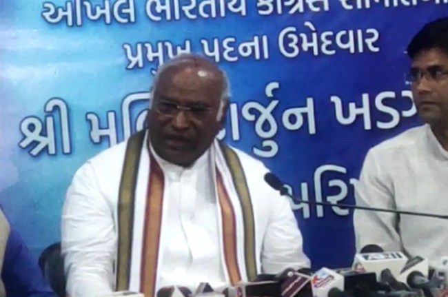 अहमदाबाद में पत्रकारों से बात करते हुए खड़गे ने बताया कि वह कांग्रेस के वरिष्ठ नेताओं और कार्यकर्ताओं के आग्रह पर अध्यक्ष पद के लिए चुनाव लड़ रहे हैं। अध्यक्ष बनने के बाद वह सबसे ज्यादा जोर युवाओं पर देंगे, पार्टी में हर वर्ग और जाति को साथ लेकर चलेंगे। रिमोट सोनिया गांधी और राहुल गांधी के हाथ में होने के सवाल पर उन्होंने कहा कि अगर कोई अच्छी बात बताता है तो वह सीखनी चाहिए, बाकी विपक्ष के लोग गहतफहमी फैला रहे हैं।