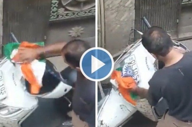 सोशल मीडिया पर वायरल वीडियो में एक व्यक्ति तिरंगा से अपने स्कूटर की सफाई करता दिख रहा है। घटना पूर्वोत्तर दिल्ली के भजनपुरा इलाके की है और वीडियो में तिरंगे का अनादर करने वाला शख्स उत्तरी घोंडा इलाके का रहने वाला है।