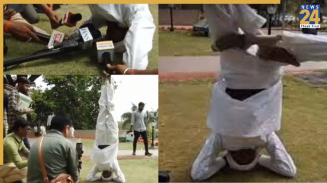 Babulal Jandel ने पुलिस कार्रवाई के विरोध में मध्य प्रदेश विधानसभा परिसर में अनोखा प्रदर्शन किया. शिवपुरी जिले से कांग्रेस विधायक जंडेल ने गांधी प्रतिमा के सामने उल्टे होकर शीर्षासन किया और करीब आधे घंटे तक इसी मुद्रा में विरोध जताते रहे. बाद में तबीयत बिगड़ने पर डॉक्टरों ने उनका स्वास्थ्य परीक्षण भी किया.