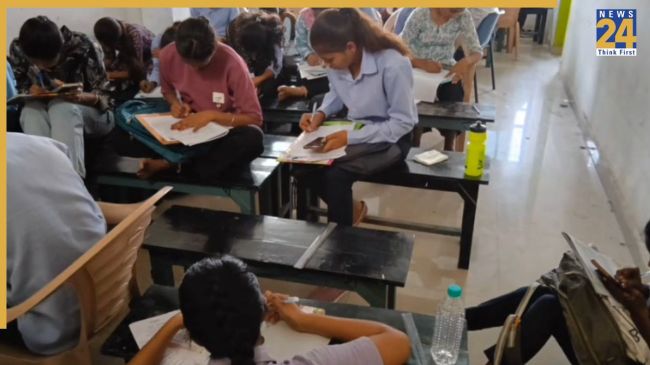 - कई छात्रों को जमीन पर बैठकर परीक्षा देनी पड़ी