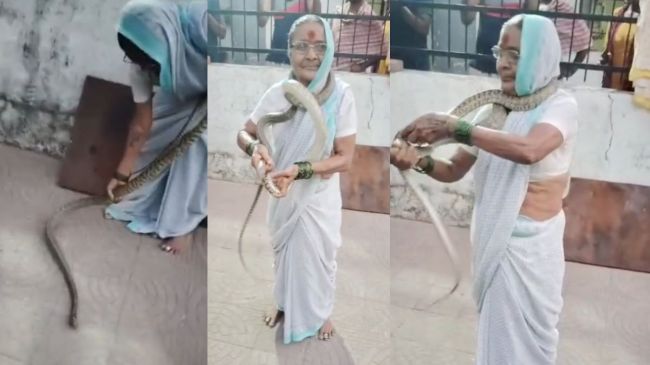 अक्सर लोग सांप को देखकर डर जाते हैं, लेकिन दादी की हिम्मत और जज्बे को देखकर हर कोई हैरान है। क्योंकि ऐसी चीजों को पकड़ने से डरते हैं। दादी का वीडियो वायरल होने पर सभी उनके हौसले की दाद दे रहे हैं।