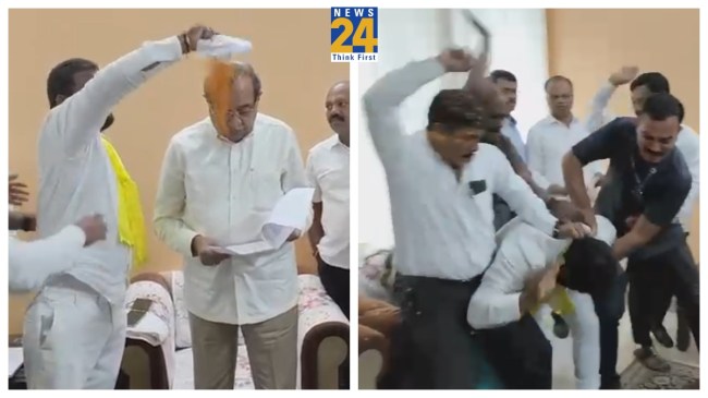 घटना सोलापुर के एक रेस्ट हाउस की है। प्रदेश के राजस्व मंत्री राधाकृष्ण विखे पाटिल किसी कार्यक्रम में शामिल होने के लिए आए हुए थे। इसी दौरान यहां समर्थकों के अलावा बाहरी लोग भी मौजूद थे। मिली जानकारी के अनुसार धनगर आरक्षण कृति समिति के कुछ प्रतिनिधि भी मंत्री से मिलने आए हुए थे। अचानक इसी दौरान समिति के इन प्रतिनिधियों में से एक मंत्री पर भंडारा (हल्दी) फेंक दी। सोशल मीडिया पर वायरल हो रहे एक वीडियो में देखा जा सकता है कि मंत्री राधाकृष्ण विखे पाटील लोगों से घिरे हुए थे। पास ही खड़ा एक शख्स (कागज में हल्दी लपेटकर लाया) मौके की तलाश में था कि कब वह अपने काम को अंजाम दे। देखते ही देखते उसने यह कर भी दिया। उधर, जैसे ही प्रदर्शनकारी ने मंत्री पाटील पर हल्दी उड़ेली, मौके पर मौजूद समथकों ने उसे तुरंत धर-दबोचा और मारपीट शुरू कर दी। बड़ी मुश्किल से यहां मौजूद पुलिस बल ने हालात को कंट्रोल किया। देखें ये VIDEO