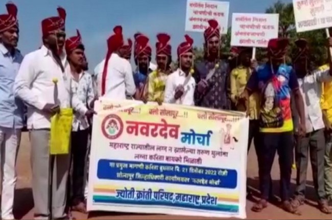 Bachelors Unique Procession: महाराष्ट्र के सोलापुर में 50 अविवाहितों ने सेहरा बांधकर अनोखा जुलूस निकाला। जुलूस का नाम भी ‘दुल्हन दूल्हा मोर्चा’ रखा गया था। मार्च के दौरान अविवाहित अपने साथ बैंड-बाजा वालों को भी लेकर चल रहे थे। आखिर में कलेक्टर कार्यालय पहुंचे और उन्हें अपनी मांगों को लेकर ज्ञापन सौंपा।