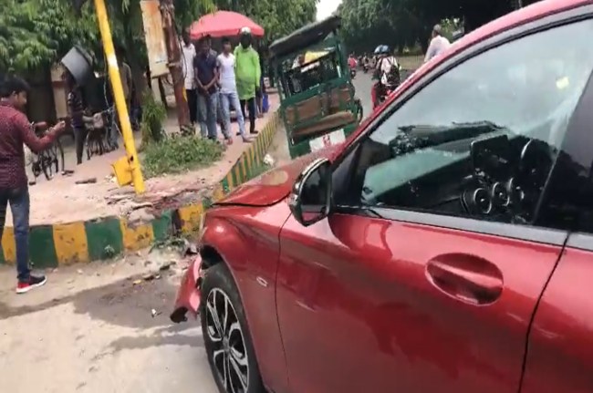 टक्कर के बाद फुटपाथ से टकराई कार