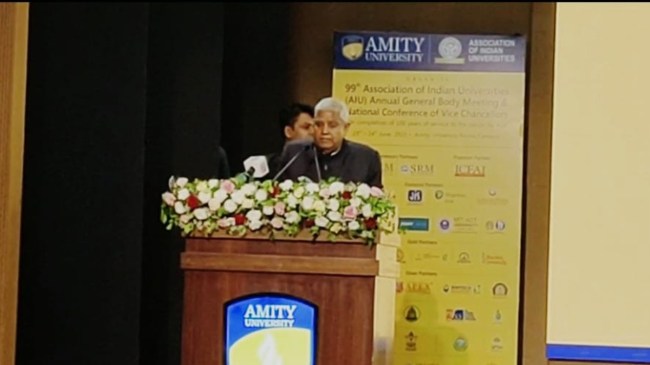 Noida News : नोएडा के सेक्टर 125 स्थित एमिटी यूनिवर्सिटी में चल रहे दो दिवसीय कुलपति सम्मेलन में सोमवार को देश के उपराष्ट्रपति जगदीप धनखड़ पहुंचे। उन्होंने लोगों को संबोधित करते हुए कहा कि हर यूनिवर्सिटी के वाइस चांसलर हमारे देश की भूमिका के लेखक है। उन्होंने कहा कि यूनिवर्सिटी सिर्फ डिग्री के लिए नहीं है, बल्कि यह ज्ञान का स्तर बढ़ाने का सबसे बेहतर माध्यम है।
