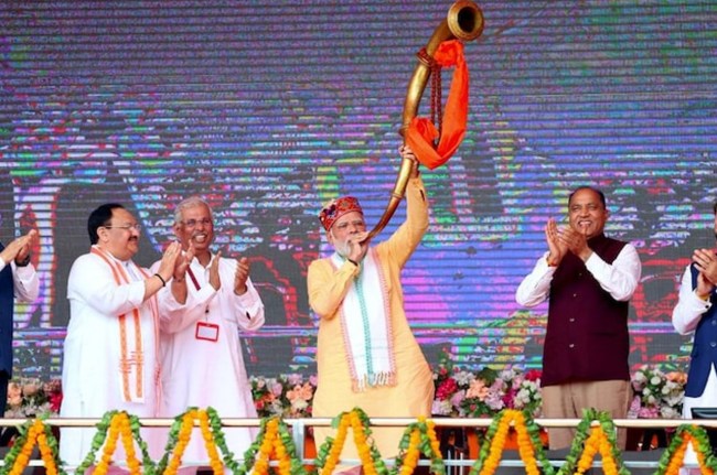 рд╢рд┐рдорд▓рд╛:┬ардкреНрд░рдзрд╛рдирдордВрддреНрд░реА рдирд░реЗрдВрджреНрд░ рдореЛрджреА рдиреЗ рдмреБрдзрд╡рд╛рд░ рдХреЛ рд╣рд┐рдорд╛рдЪрд▓ рдкреНрд░рджреЗрд╢ рдореЗрдВ 'рдЪреБрдирд╛рд╡реА рдмрд┐рдЧреБрд▓' рдмрдЬрд╛рддреЗ рд╣реБрдП рдХрд╣рд╛ рдХрд┐ рднрд╛рдЬрдкрд╛ рд╕рд░рдХрд╛рд░ рди рдХреЗрд╡рд▓ рдЖрдзрд╛рд░рд╢рд┐рд▓рд╛ рд░рдЦрддреА рд╣реИ рдмрд▓реНрдХрд┐ рд╡рд┐рдХрд╛рд╕ рдкрд░рд┐рдпреЛрдЬрдирд╛рдУрдВ рдХрд╛ рдЙрджреНрдШрд╛рдЯрди рднреА рдХрд░рддреА рд╣реИред