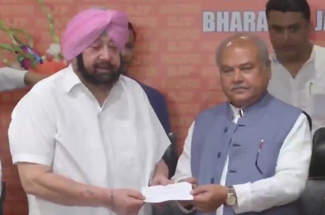 कैप्टन अमरिंदर सिंह दिल्ली स्थित भारतीय जनता पार्टी के मुख्यालय पहुंचे। केंद्रीय मंत्री नरेंद्र सिंह तोमर ने अमरिंदर सिंह को पार्टी की सदस्यता दिलाई। इस दौरान केंद्रीय मंत्री किरण रिजिजू, भाजपा नेता सुनील जाखड़ और भाजपा पंजाब अध्यक्ष अश्विनी शर्मा भी मौजूद रहे।